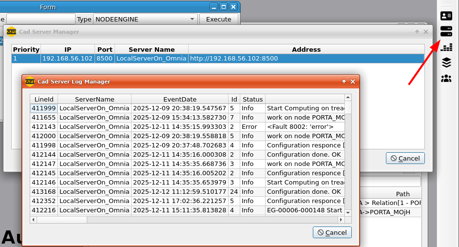 On the context menu of this windows you can control also the log file of the cad application in order to check the real status of the technical configuration